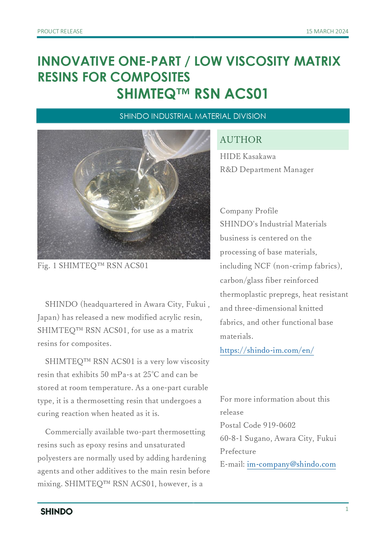 INDUSTRIAL MATERIALS DIVISION released the material data sheet of SHIMTEQ『NCF Resinply(NCF D200CR)』.